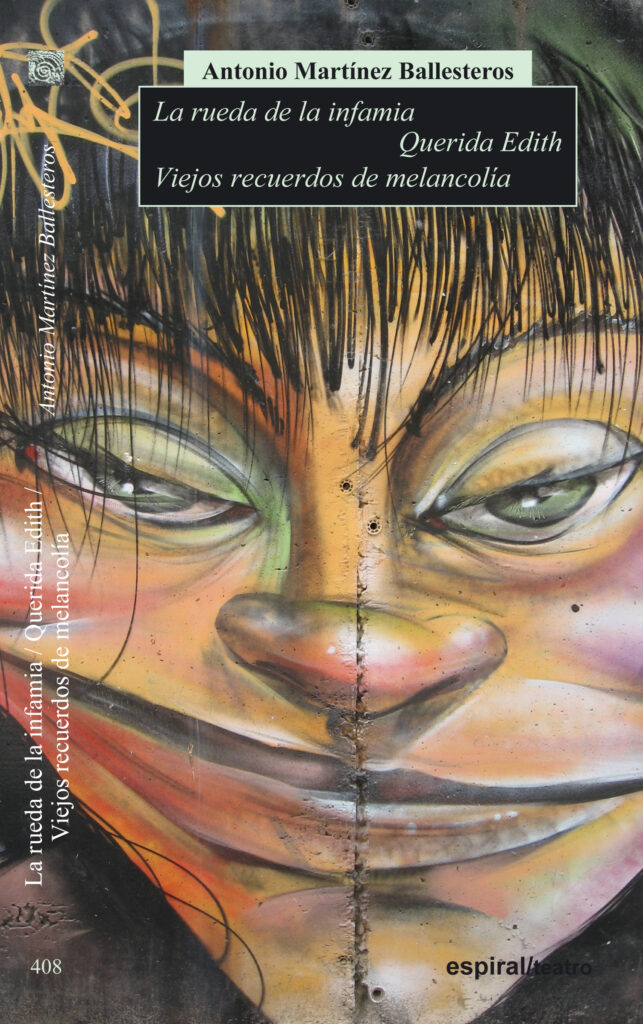 El presente volumen recoge tres piezas teatrales inéditas. Al contrario que en su última publicación, compuesta por dos textos irónicos e hilarantes, nuestro autor elige ahora moverse por los cauces del drama. Drama descarnado, cercano a la hipérbole relativa, en el primer caso; y al intimismo de los círculos pequeños, pero no por ello menores en intensidad y calado, en los otros dos. Así, La rueda de la infamia se revela como un grito de protesta contra la actual crisis económica y ética, provocada, mantenida y no resuelta por una política conservadora, de permanente favor al poderoso en perjuicio de los más humildes y la gente corriente. Querida Edith constituye un ejercicio de memoria que parte de un recuerdo real de Martínez Ballesteros, pero que no es sino una muestra más de una tragedia universal. La trama discurre en la posguerra española y habla de rencor, de represalia y de una imposible reconciliación. Por último, Viejos recuerdos de melancolía presenta un drama intimista. El retrato psicológico de los personajes se inserta en la asfixiante realidad de una existencia de provincias a finales de los años 50. Otras obras de Antonio Martínez Ballesteros publicadas en esta colección son: El despacho del Sr. Calleja y Salir en la foto (núm. 171); Vivir como perros y El marido breve (núm. 193); La hora del diablo y Situaciones (núm. 202); Romeo y Julieta se divorcian y Romancero secreto de un casto varón (núm. 211); Como un sueño de humo y Cuatro mujeres (núm. 223); Orestiada 39 y La utopía de Albana (núm. 242); El tranquilizante y Situaciones II (núm. 262); El sueño de Barataria y Los mendigos (núm. 278); Dña. Perfecta y Tres número impar (núm. 367); y La comedia de los contrastes y Fantasía con recortes (núm. 395).